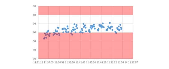 此用戶(hù)的噴粉膜厚合格值為60-80微米。噴粉設(shè)備開(kāi)機(jī)運(yùn)行后通過(guò)coatmaster在線(xiàn)測(cè)試在第一米就發(fā)現(xiàn)膜厚值低于下限值,通過(guò)調(diào)整參數(shù),10分鐘就把噴粉膜厚調(diào)整到正常合格范圍。大大減少了因滯后測(cè)試造成的不良品的返工數(shù)量。