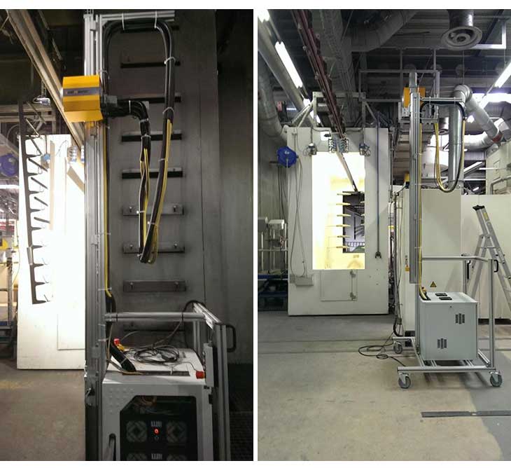 Coatmaster涂魔師非接觸式測(cè)厚系統(tǒng)結(jié)合線(xiàn)性垂直移動(dòng)裝置對(duì)移動(dòng)的板材進(jìn)行在線(xiàn)測(cè)厚。