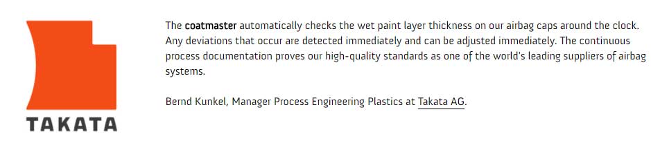 CoatMaster測(cè)量系統(tǒng)會(huì)24小時(shí)不間斷自動(dòng)檢測(cè)我們安全氣囊蓋上未干的油漆厚度。當(dāng)出現(xiàn)任何偏差時(shí),系統(tǒng)都可以及時(shí)發(fā)現(xiàn)并立即作出調(diào)整。持續(xù)的工藝記錄檔案證明了我們是世界先進(jìn)的安全氣囊系統(tǒng)供應(yīng)商之一。