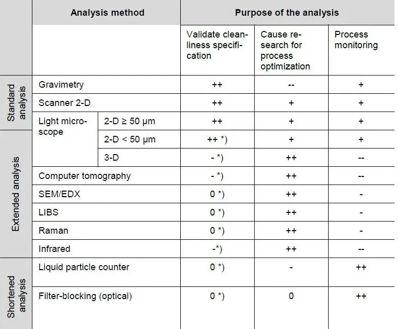 清潔度分析方法與應(yīng)用范圍(摘自VDA19)