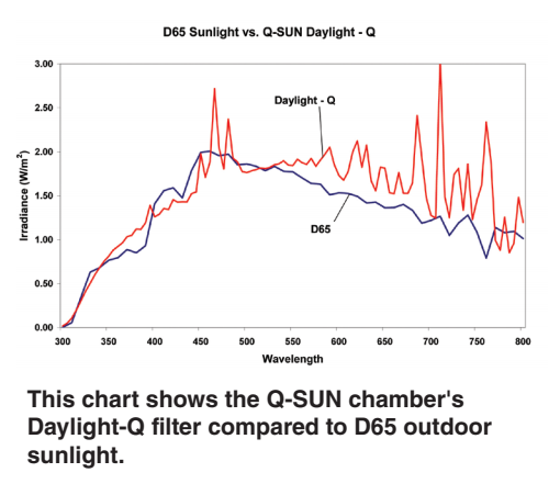 ICH指南沒有規(guī)定光譜是否應(yīng)與D65或ID65匹配。通常,ID65光譜是用Q-SUN中的WINDOUS-Q 濾光片模擬的,因?yàn)樗M了進(jìn)入建筑物內(nèi)部的陽光。然而,日光濾光片適用于室外應(yīng)用,如染發(fā)劑和防曬霜。