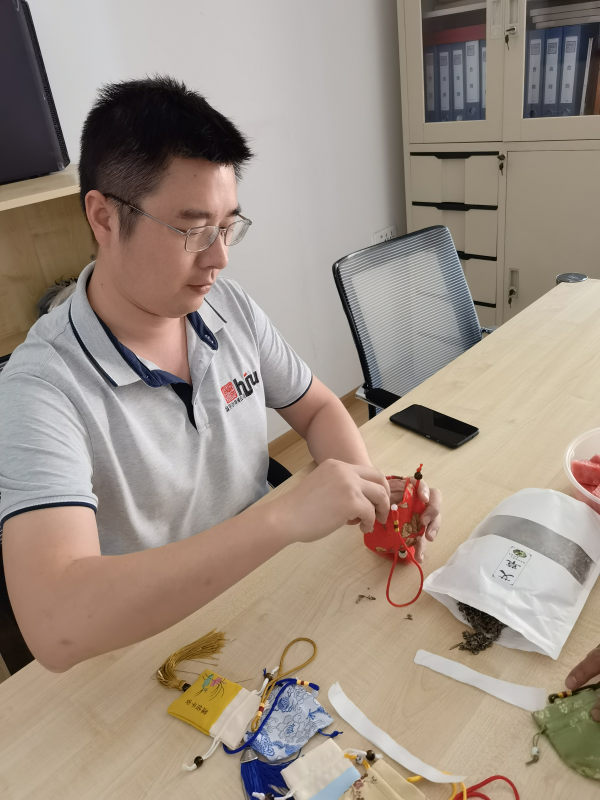 同時(shí),翁開爾提前過端午,舉辦“濃情端午”活動(dòng)——吃粽子、包香囊、繡香包,各地公司或辦事處熱烈參與。