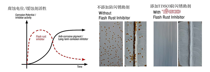 推動(dòng)降低涂料中VOC含量,也就是推動(dòng)水性化發(fā)展;這使得高性能防銹助劑特別受關(guān)注;防閃銹助劑通過(guò)阻止表面氧化提供了即時(shí)的,短效的保護(hù)。