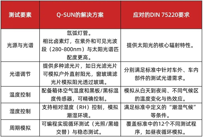 Q-SUN氙燈試驗(yàn)箱可精準(zhǔn)滿足DIN 75220標(biāo)準(zhǔn)測試要求。