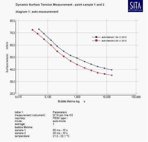 使用德國SITA 動態(tài)表面張力儀,直接得出表面活性劑的動態(tài)表面張力數(shù)據(jù):