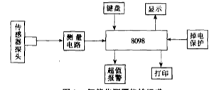是由高頻渦流發(fā)射式傳感器探頭,測(cè)量電路,8098單片機(jī)控制系統(tǒng)組成。如圖所示: