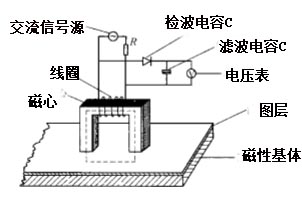 當(dāng)涂層厚度不同時 ,磁回路的磁阻將不同 ,即涂層厚度較薄時 ,回路的磁阻小;涂層厚度較厚時,回路的磁阻大。磁阻的變化導(dǎo)致了電感線圈的電感量和阻抗的變化。在信號源和內(nèi)阻R參數(shù)不變的情況下,電感兩端的電壓將隨涂層厚度的變化而變化,即利用此電壓可表征涂層厚度。這時將此電壓送至二極管D檢波和電容器C濾波后 ,經(jīng)標(biāo)度變換,送至電壓表或數(shù)碼顯示電路,顯示出涂層厚度值。