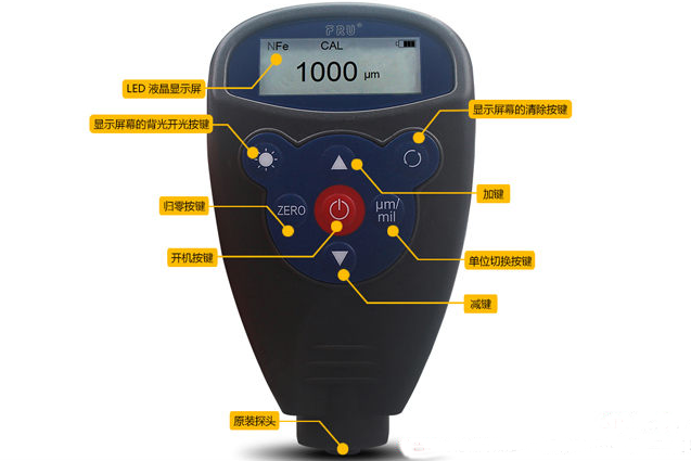 1、 電磁法( 電感磁性) 測(cè)厚儀:由電源插頭, 測(cè)試探頭,儀器主體及標(biāo)準(zhǔn)膜等構(gòu)成,是利用電磁場(chǎng)磁阻的原理來(lái)進(jìn)行測(cè)量厚度。適合在實(shí)驗(yàn)室內(nèi)作較精確的測(cè)定