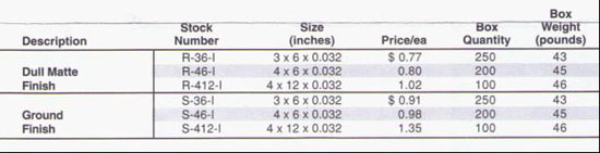 R-36-I | 3x6 x0.032 | 250片/盒 |