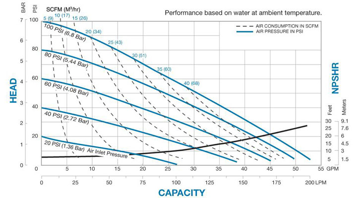 進(jìn)口氣動(dòng)隔膜泵口徑尺寸是1寸,容量是0到53加侖200公升,是一個(gè)大容量,高壓高效的氣動(dòng)隔膜泵。