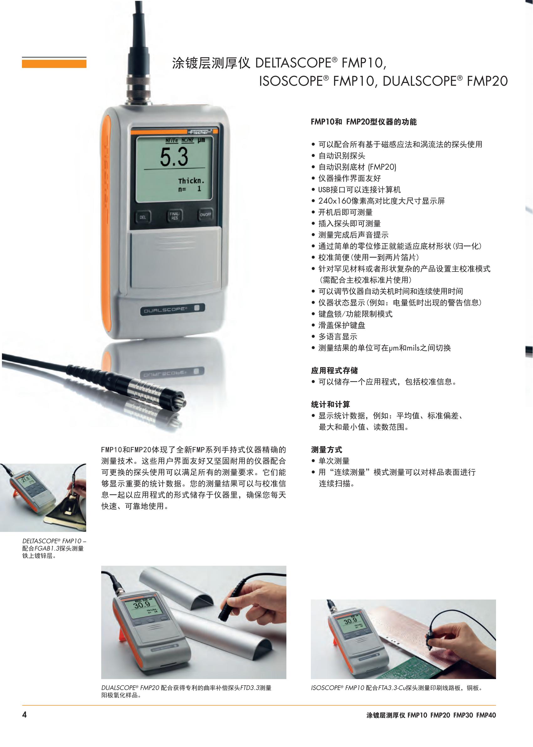 菲希爾FMP20涂層測(cè)厚儀根據(jù)適配的探頭不同,可采用磁感應(yīng)法DELTA,電渦流法ISO或者同時(shí)采用這兩種方法DUAL進(jìn)行自動(dòng)切換,對(duì)涂鍍層進(jìn)行無(wú)損且高精度的測(cè)量。