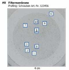 由MicroReporter生成的清潔度測(cè)量報(bào)告直接顯示在Microsoft Excel®。語言種類可以在英語和德語之間進(jìn)行切換。十個(gè)盡可能大的粒子會(huì)顯示在一個(gè)圖片庫的頁面。此外,還可以生成趨勢(shì)分析和審核報(bào)告。