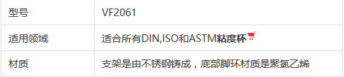 粘度計支架是由不銹鋼鑄成,底部腳環(huán)材質(zhì)是聚氯乙烯,適合所有DIN、ISO和ASTM粘度杯。