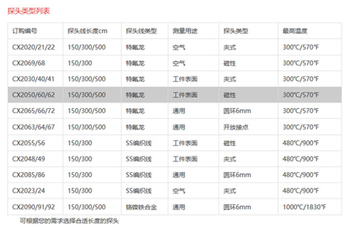 CX2050爐溫探頭是一種夾式工件表面探頭,測(cè)量最高溫度:300℃/570℉。