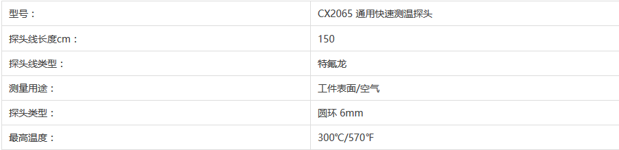 CX2065 通用快速測溫探頭是圓環(huán)設(shè)計(jì),可以測量工件表面或者空氣的溫度。